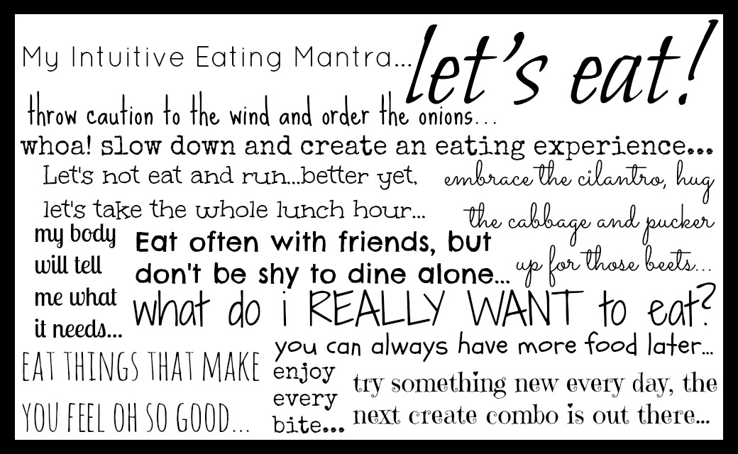 Intuitive eating is a nutrition philosophy which teaches people to become more attune to the body’s natural hunger and fullness signals in order to attain a healthy weight and to become a generally healthier person. It is a process that is intended to create a healthy relationship with food, mind, and body. Intuitive eating can also be called wise eating, conscious eating, non-diet approach and normal eating.