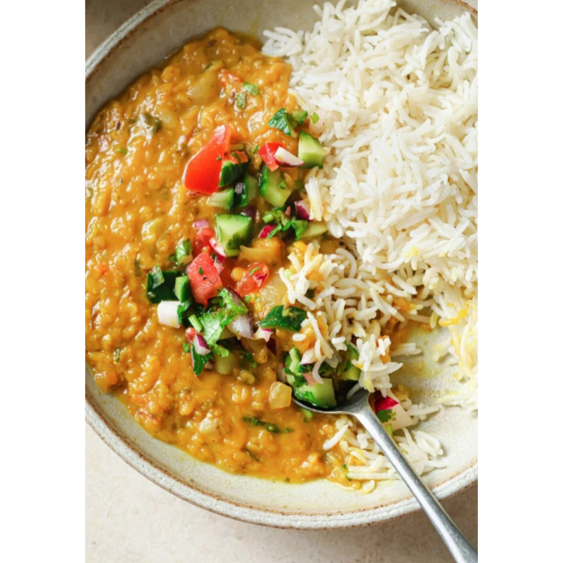 Example My minimum serving of Evening Meal: Six Tbsp of Rice (This is 75 grams of rice) with 4 Tbsp of lentils was perfect. Add a serving of Yogurt and a serving of Salad (80grams) and I had a complete Evening Meal.