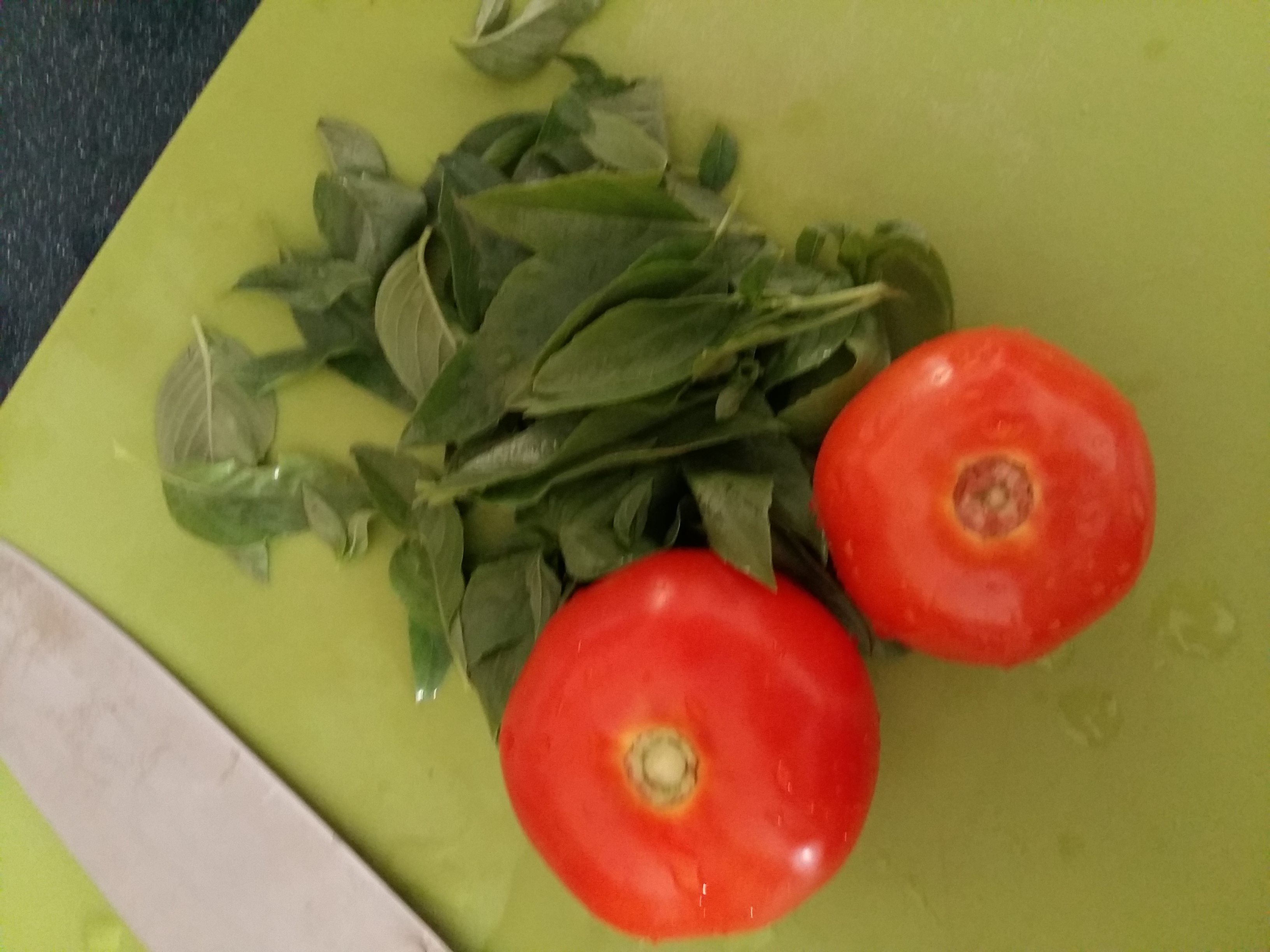 Chop the basil and tomatoes.