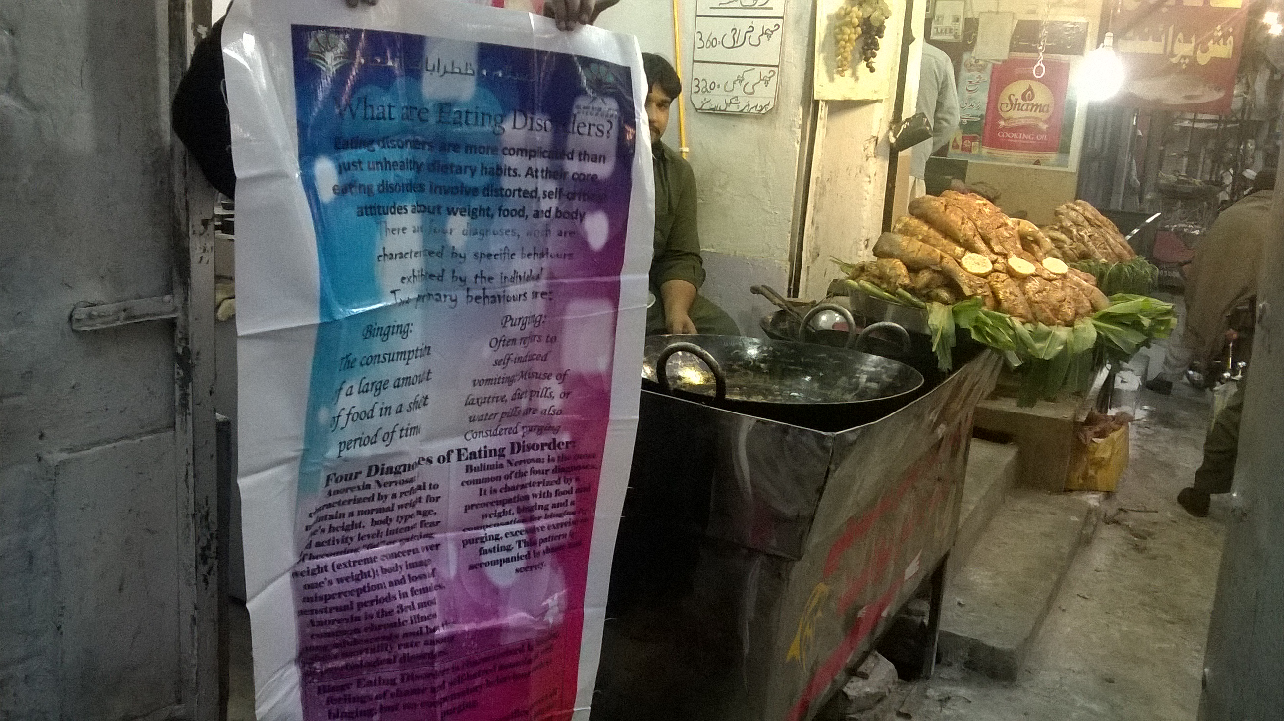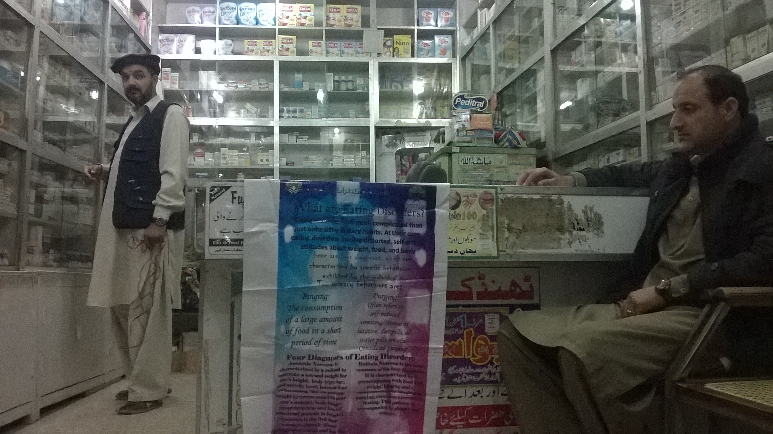 We are still in Pakistan. This time we educated shop owners, drug store owners, pharmacies on Eating Disorders. Our aim was to make them aware of laxative abuse and on signs and symptoms of eating Disorders. Abusing laxatives in an attempt to control body weight is generally a sign of a serious eating disorder. Using laxatives for an extended period of time can lead to very negative health consequences. Laxatives are not designed for weight loss and can cause serious, sometimes irreversible, damage.
