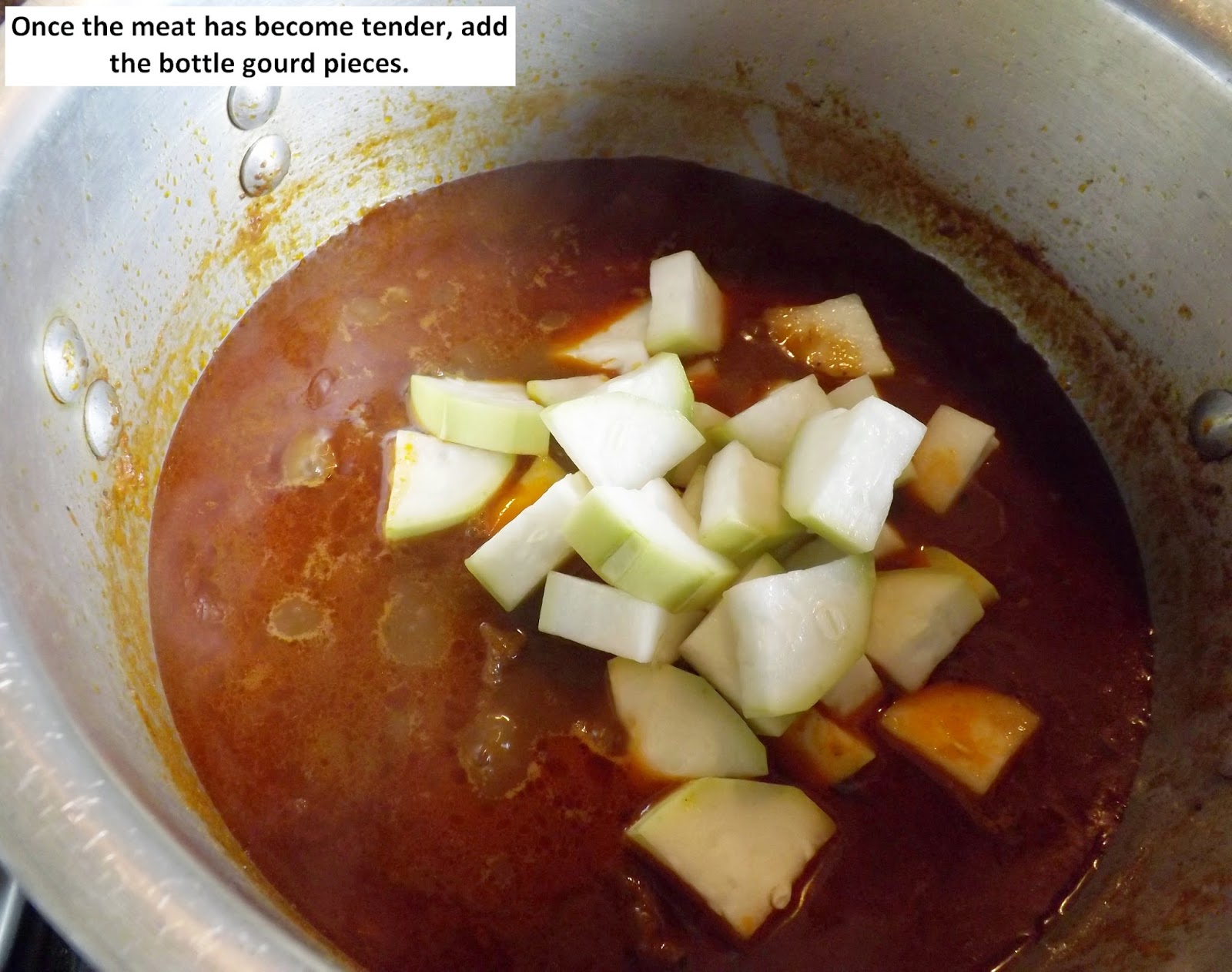 Once the meat is tender, add the yoghurt if you are using it and the gourd pieces and cook for a further 15 mins until they are soft.