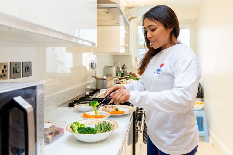 Tell us about yourself I started my business Fitness Reborn UK as a result of struggling with an eating disorder when I was young. As an amateur boxer, I also had to overcome cultural barriers (being an Asian, Muslim woman). Depression was something I experienced in my early 30s and due to these things combined I created a fitness program that championed people to take control of their lives. Exercise for me is like breathing so during Ramadan I keep up with my fitness. The routine is totally different but it feels amazing and hard at the same time. So what are you having for iftar? Today I have prepared roast chicken with loads of vegetables and potatoes. I usually break my fast with a date, high-quality protein shake and some fruits before eating the main dish.