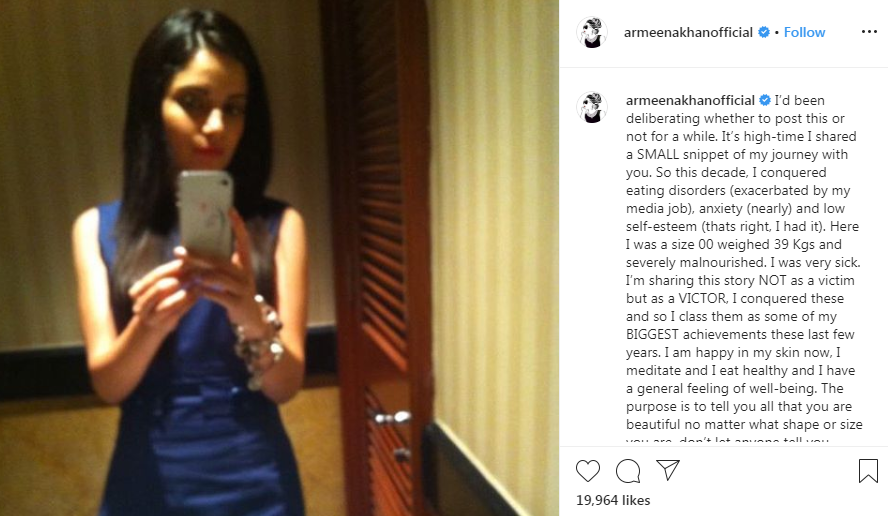 Pakistani actor Armeena Khan opened up about her eating disorder and how she deals with it to raise awareness.