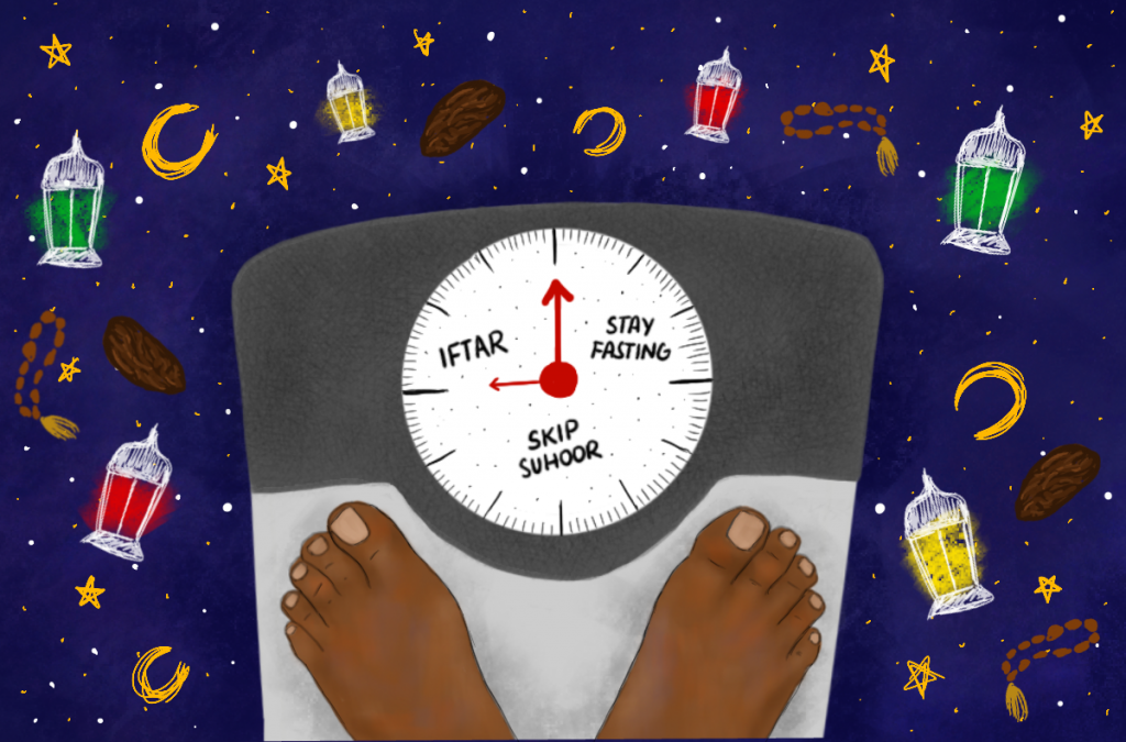 A lot of attention is given to food during Ramadan – if you’re not abstaining from it, then you’re eagerly anticipating it – and for someone battling a difficult relationship with food, this can create a very triggering and toxic environment. Many sufferers report both their restrictive and binging behaviours to increase during Ramadan, which is why most recovering Muslims choose not to engage with the fasting element of this month. Fasting can be the perfect disguise for your eating disorder, as during Ramadan, not eating becomes normal and no longer something that is frowned upon. This is perhaps why it is so easy to slip back into disordered behaviours without those around you noticing. It becomes difficult to differentiate whether you are fasting for God or fasting for your eating disorder, and the whole process of this can be incredibly overwhelming to manage.
