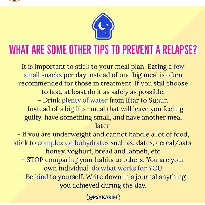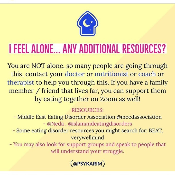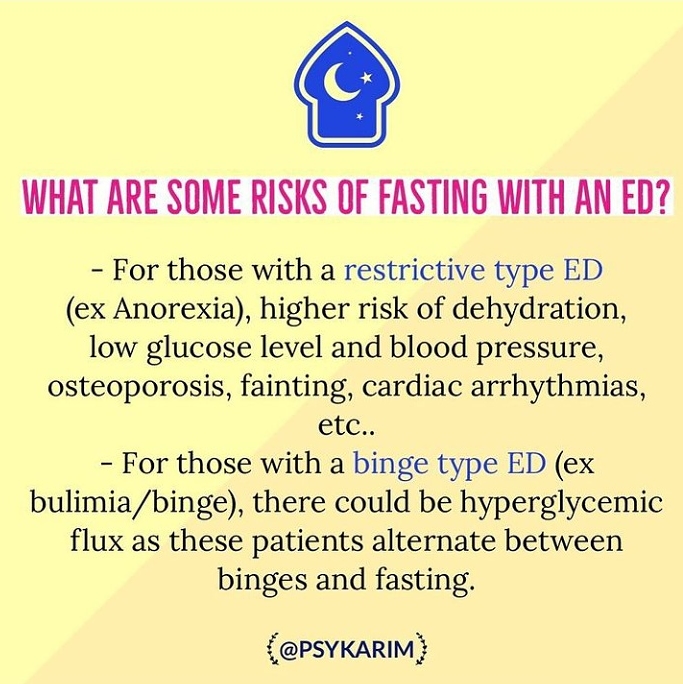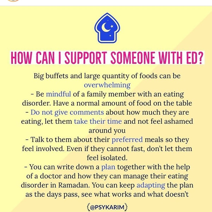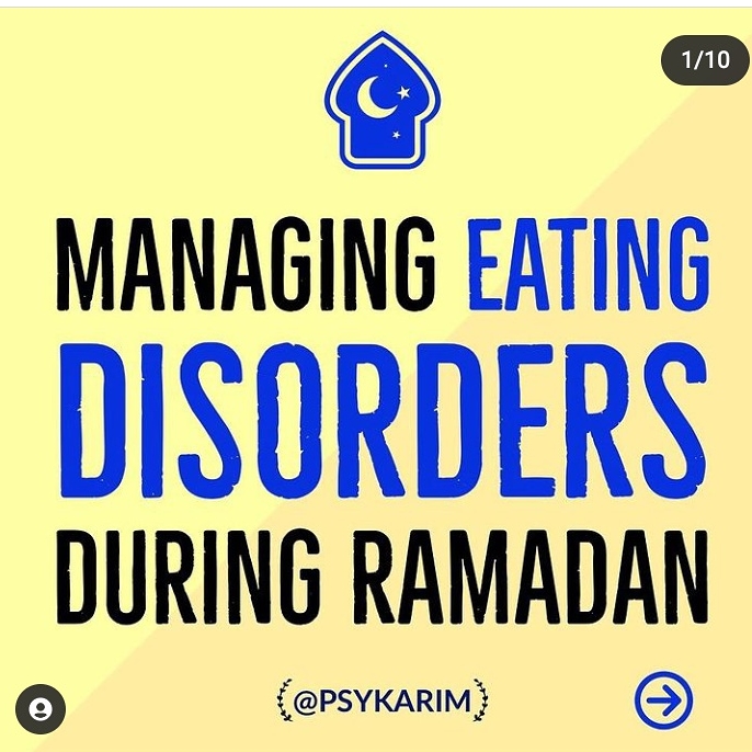 Please find below a very fantastic mini guide by Karim Khalil, Clinical Psychologist from Lebanon on Managing Eating Disorders during Ramadan. The year 2021, has been fantastic in terms of great content coming from Muslim Professionals and organizations on Ramadan Fasting and Eating Disorders.