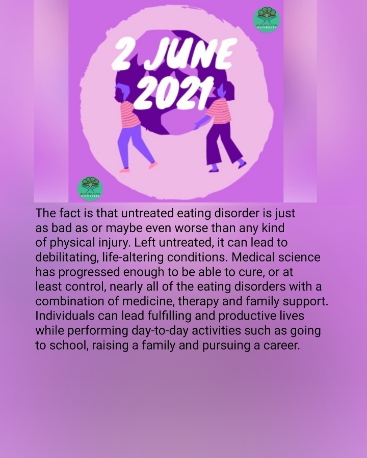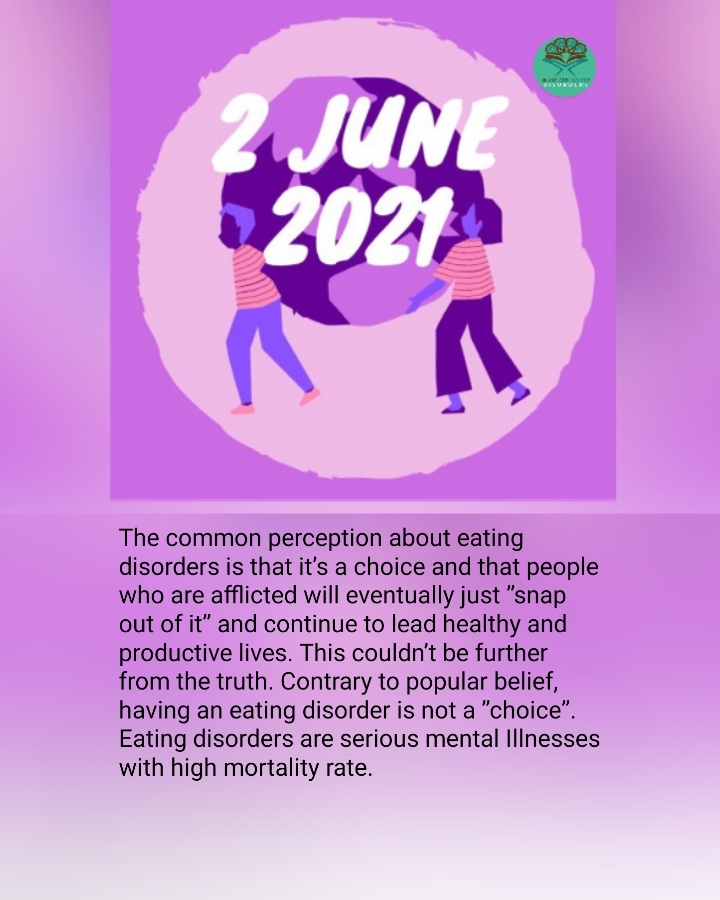 World Eating Disorders Action Day is a grassroots movement designed for and by people affected by an eating disorder, their families, and the medical and health professionals who support them. Uniting activists across the globe, the aim is to expand global awareness of eating disorders as genetically linked, treatable illnesses that can affect anyone. The Sixth Annual World Eating Disorders Action Day will take place on 2 June 2021 across the globe. This year our focus is about #Equity4EatingDisorders