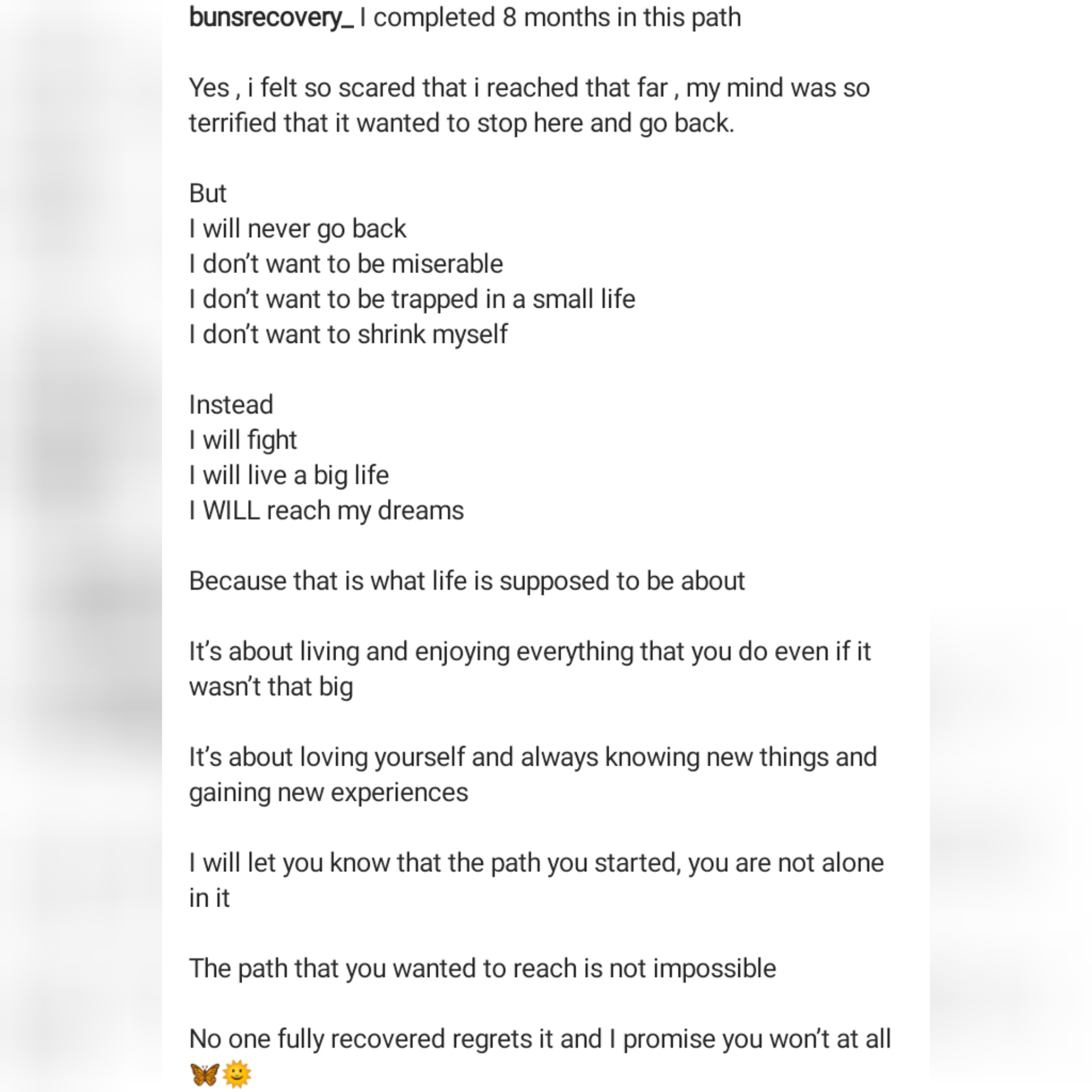 Congratulations on completing your 8 months of recovery.