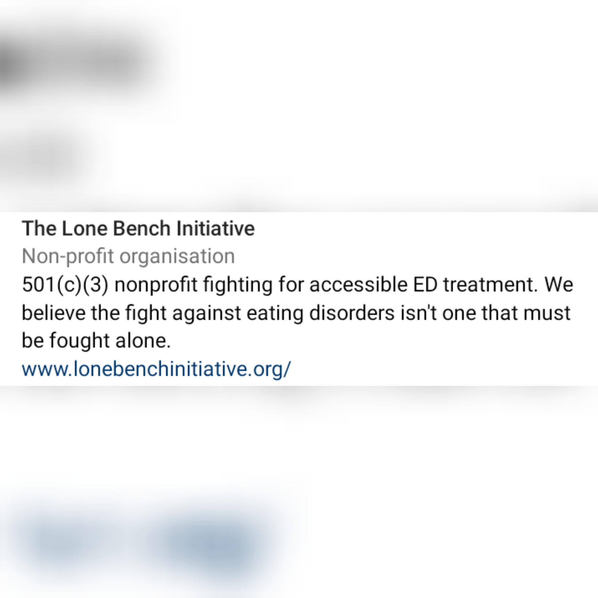 I have learned that none of the things that I was told or heard after my ED diagnosis were true. Not only did I not have to be “sick enough” to receive treatment, but I also did not have to be a certain race or religion. All of my experiences pushed me to want to do something about this. I obtained recovery, but what about all those other people that are simply deemed not “sick enough?” That can’t obtain the funds to get the help they need? Whose families or doctors don’t even believe it’s possible for them to have an eating disorder? That is why I worked to create The Lone Bench Initiative. It is a nonprofit organization fighting to make eating disorder treatment more accessible while also shattering myths about eating disorders.